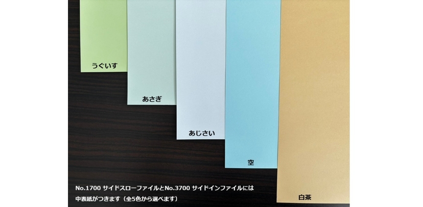 サイドスローファイルとサイドインファイルには、中表紙が付きます。全5色から、お好きな色を1色お選びいただけます。
