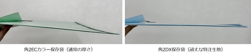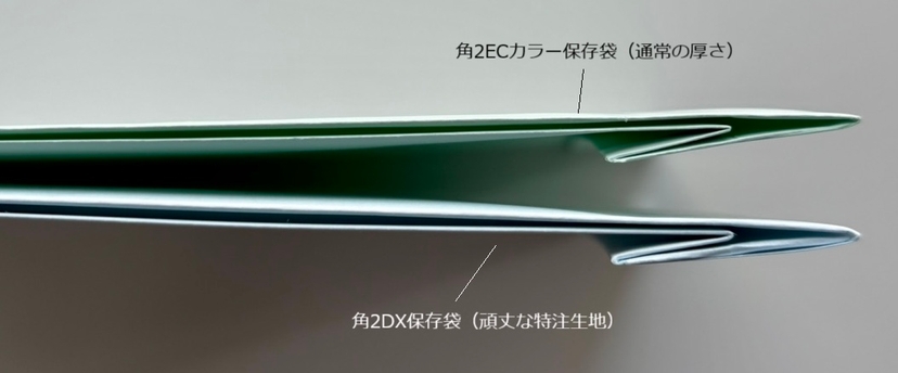 通常の保存袋も厚みがあるためあまりたわみませんが、DX保存袋はピンッとまっすぐのままです。