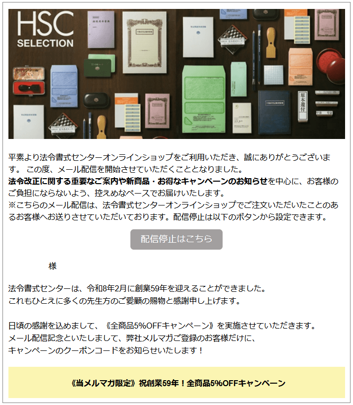 創業59年の新たな挑戦として、今年から法令書式センターのメール配信を開始させていただくこととなりました。